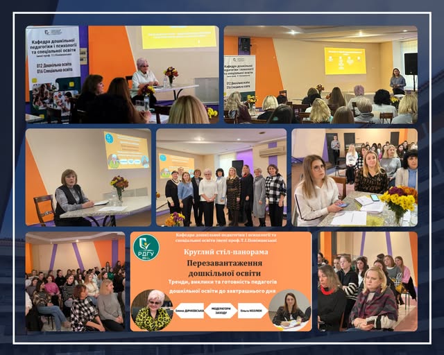 13 листопада у рамках декади педагогічного факультету наша кафедра провела надзвичайно цікавий і змістовний круглий стіл-панораму «Перезавантаження дошкільної освіти: тренди, виклики та готовність педагогів дошкільної освіти до завтрашнього дня», присвячений 85-річчю РДГУ і 60-річчю кафедри педагогіки і психології та спеціальної освіти імені проф.Т.І.Поніманської. Учасниками круглого столу були: головний спеціаліст відділу дошкільної освіти Управління освіти виконавчого комітету Рівненської міської ради Галина РЕМИЗОВИЧ, директори ЗДО № 32 – Людмила ЄВТУШОК, Центру «Пагінець» Людмила ЗАЇКА, № 44 – Катерина ПРИГОДА, гаранти освітніх програм, викладачі та здобувачі спеціальності «Дошкільна освіта». Модератори заходу Ілона ДИЧКІВСЬКА та Ольга КОЗЛЮК забезпечили активну атмосферу – ідеї, дискусії, обмін досвідом, професійні інсайти – усе це показало, що сфера дошкілля сьогодні переживає важливий етап оновлення. Під час круглого столу говорили про сучасні тренди у дошкільній освіті – дитиноцентризм, інклюзію, соціально-емоційний розвиток, партнерство з сім’єю, цифровізацію та професійне зростання педагогів; про виклики, які постають перед освітянами у нових реаліях; про готовність педагогів до змін: що мотивує, що потребує підтримки та які ресурси вже є в системі; про роль нового Закону України «Про дошкільну освіту», Державний стандарт дошкільної освіти та значення оновлення нормативної бази. Дошкільна освіта сьогодні – не просто перша ланка освіти. Це середовище, у якому формується безпека, добробут, емоційна стійкість, творче мислення й соціальна компетентність дитини. А наші педагоги – саме ті люди, що творять цей фундамент майбутнього.